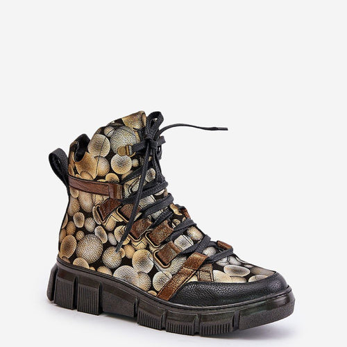 Women's boots from the Maciejka brand. Made of top quality natural leather. They are set on a massive platform, which adds to their modern character. Slip-on model with a zipper located at the back of the upper. The soft insole guarantees exceptional comfort while wearing, and the upper decorated with an animal pattern gives the whole thing a fashion claw....