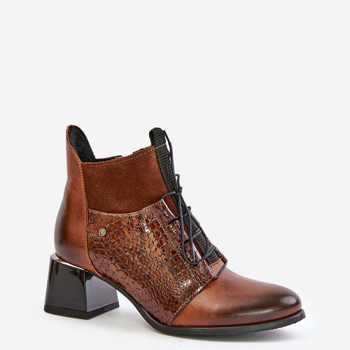 Elegant ankle boots made of natural leather, lined with felt, are a combination of style and comfort for cold days. Fastened with a zipper. They stand out with a shaft featuring an eye-catching animal pattern, which adds character to them. Perfect for elegant stylizations, they will be a great addition to any autumn-winter wardrobe. fabric natural leather warmers ~filc Footbed...