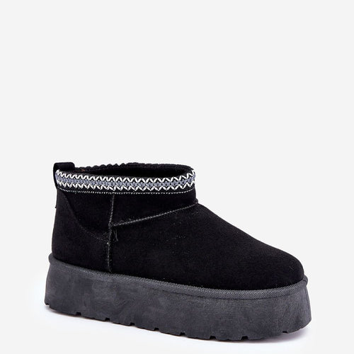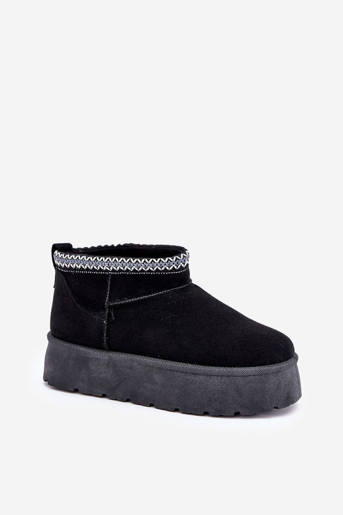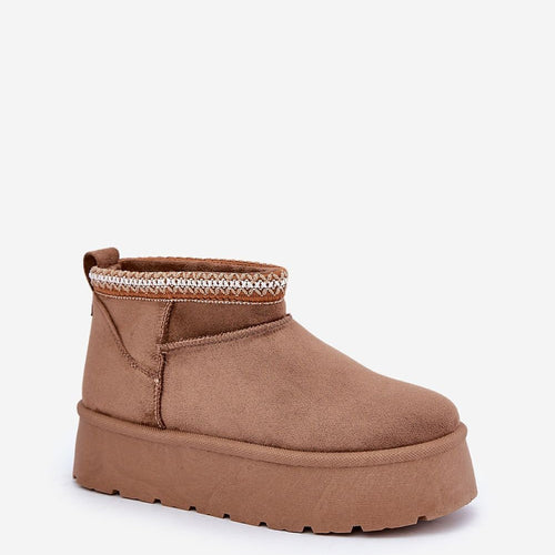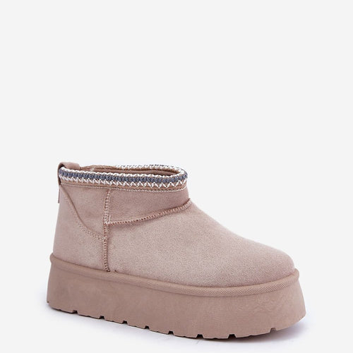 Stylish women's snow boots made of eco suede. Set on a platform that effectively insulates from the cold ground. The inside of the shoes is lined with soft fur, providing warmth and comfort on cold days. The top of the upper is adorned with a subtle embroidery, adding a unique charm. Perfect choice for winter walks and daily activities on...