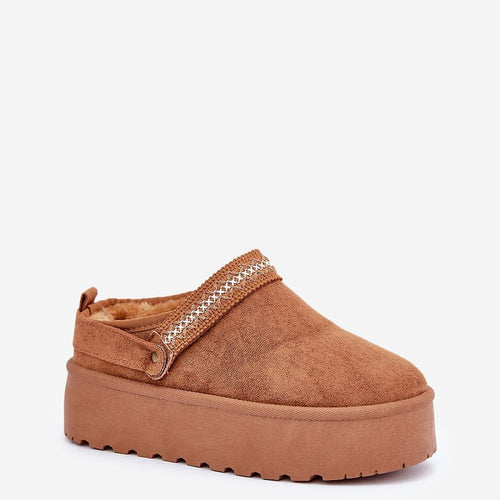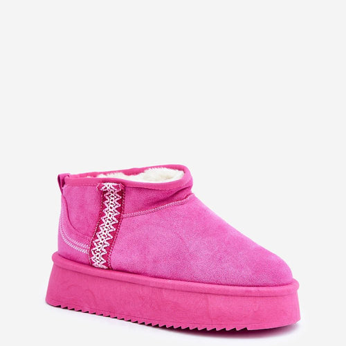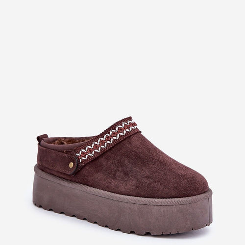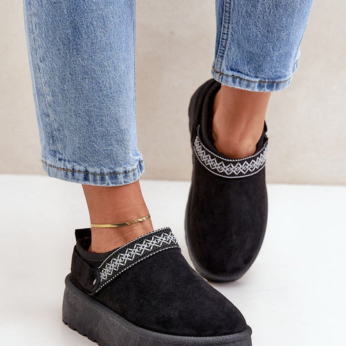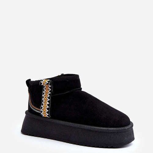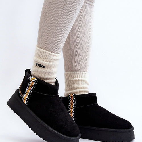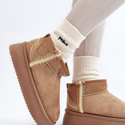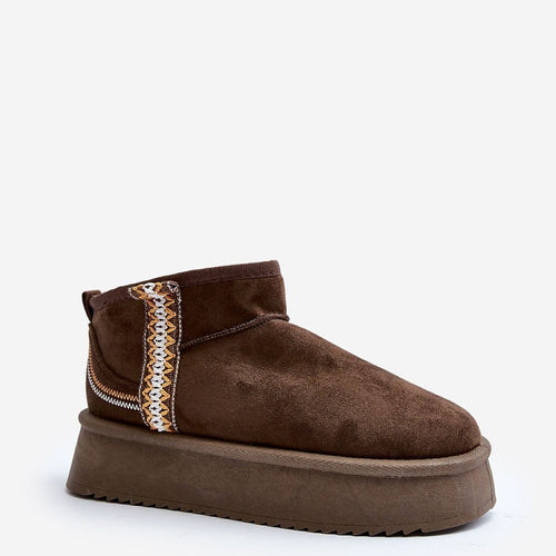 Snow boots on a platform are the trendiest style of this season! This model is made of faux suede. The thick sole made of rubber material will insulate you perfectly from the cold ground. The ankle-high upper is decorated with an Aztec pattern. The inside is lined with fur. You definitely have to have them! fabric imitation leather suede warmers...