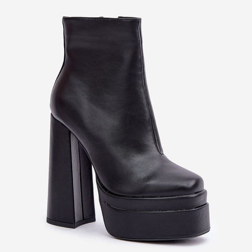 Women's ankle boots made of eco leather, set on a massive platform and high heel, which add character to any outfit. The model with rounded toes ensures comfort when worn. The interior is lined with shoe lining, perfect for cooler days. Practical zipper closure makes it easy to put on. Stylish and comfortable, perfect for everyday wear and special occasions....