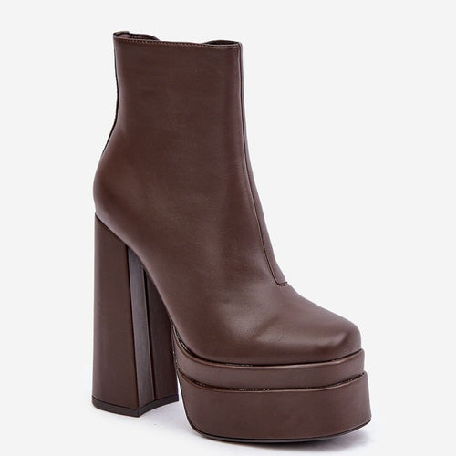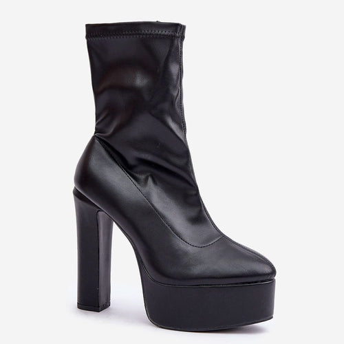 Women's ankle boots made of eco leather, set on a massive platform and high heel that add character to any styling. The model with rounded toes ensures comfort. The interior is lined with a shoe blanket, perfect for cooler days. Practical zipper closure makes it easy to put on. Stylish and comfortable, perfect for everyday wear and special occasions. fabric...