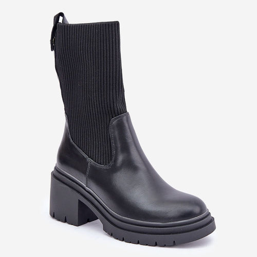 Stylish women's ankle boots with elastic, sock-like upper. Set on a stable block heel, guaranteeing comfort even during long wear. Rounded toes give a classic look, making them suitable for many outfits. Perfect for everyday wear! fabric ecological leather plus fabric Footbed fabric Upper height 20 cm Heel height 7 cm Size Insole lenght 36 23.5 cm 37 24 cm...