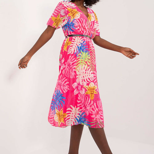 This dress is the quintessence of everyday elegance that will make every day special. Its blushed cut provides freedom of movement, while emphasizing the feminine silhouette. The lower part of the dress is decorated with pleats, adding lightness and delicacy to the whole style. Made of polyester, this dress not only looks great, but is also easy to care for...