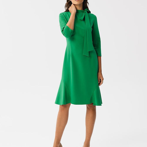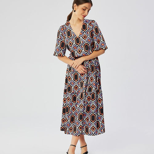 Made of excellent quality viscose fabric, 100% made and sewn in Poland, the dress combines elegance, comfort and local production. Its A-line cut is perfect for various occasions, combining comfort with subtle charm. The V-shaped neckline adds delicacy to the dress, emphasizing the neck and décolletage. The 7/8 length sleeves with tied cuffs add a unique touch to the dress,...