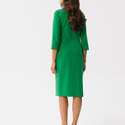 Here is a charming pencil cut dress that combines classic charm with modern style. Made of high-quality fabric, it is not only elegant, but also comfortable. Its round neckline adds to its subtlety. Modeling stitching running through the center of the dress emphasizes the silhouette and adds elegance. The 3/4 length sleeves are versatile and fashionable. The length of the...