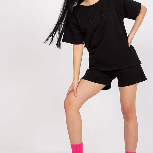 A set consisting of a blouse and short shorts. Short sleeve blouse in a loose fit. Short shorts with a drawstring and slip pockets. Cotton 70 % Polyester 30 % Size Lenght Chest Waist one-size-fits-all 59/40 cm 102 cm 66 cm