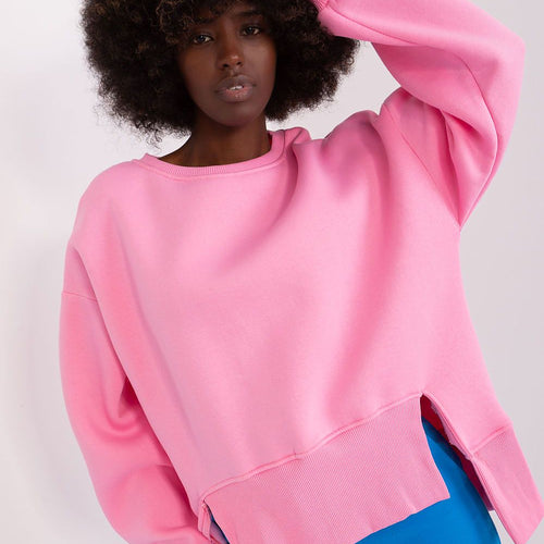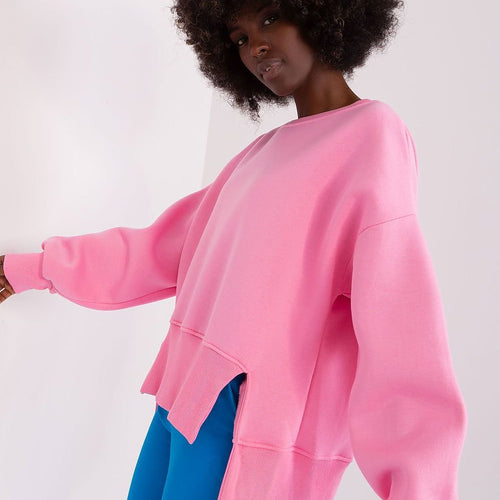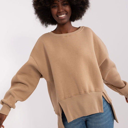 This women's sweatshirt is an excellent choice for everyday wear. Its sleek design makes it suitable for many outfits. The sweatshirt has a round neckline and long sleeves, making it comfortable to wear in different weather conditions. Made of airy cotton, it is pleasant to the skin. The asymmetrical finish of the bottom adds originality and a modern touch to...