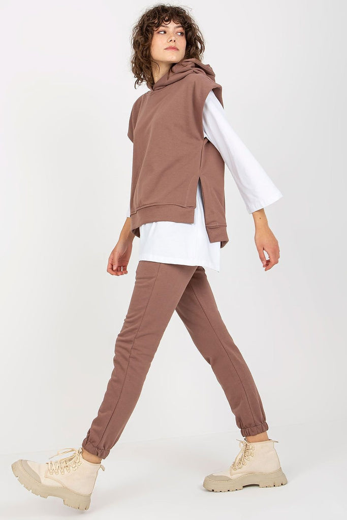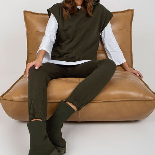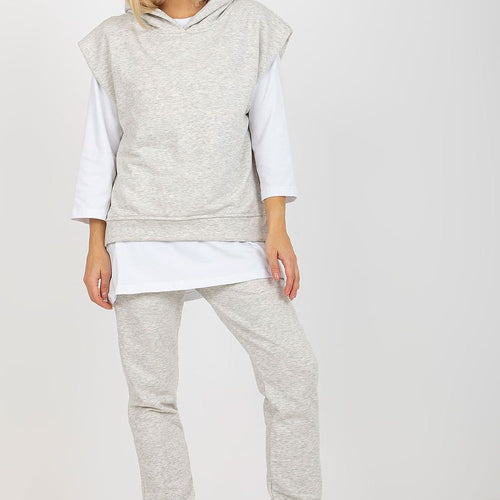 Sweatsuit set consisting of a blouse, sweatshirt and pants. Blouse with 3/4 sleeves and round neckline. Blouse with short sleeves and a hood. Long pants with a tie at the waist and slip pockets. Cotton 70 % Polyester 30 % Size Lenght Chest Waist one-size-fits-all 75/65/95 cm 110/110 cm 68 cm