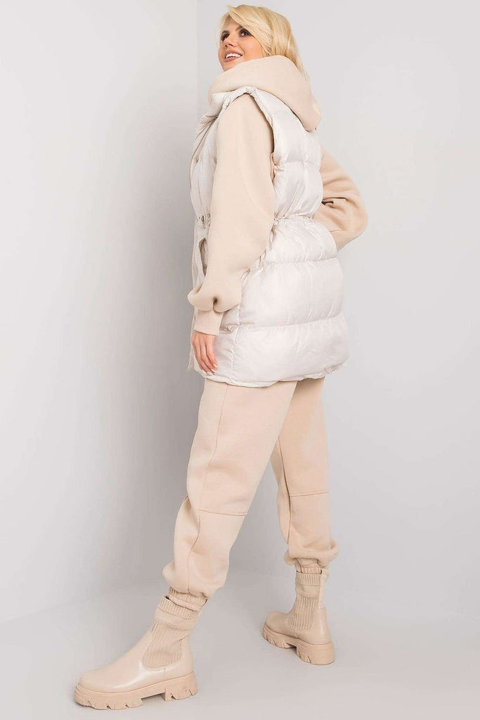 A set consisting of a down vest, sweatshirt and sweatpants. Zippered vest with insulated lined pockets. Zippered sweatshirt with hood. Pants with slip pockets. Material composition of the vest: 100% polyester. Cotton 70 % Polyester 30 % Size Lenght Chest Waist S/M 79/67/98 cm 112/126 cm 72 cm