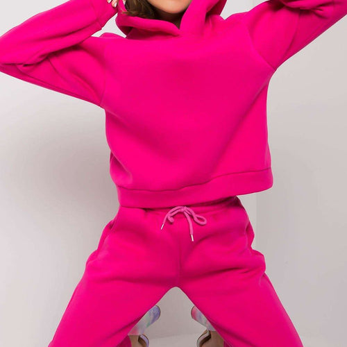 Women's sweatshirt set consisting of a sweatshirt and pants. Short sweatshirt with long sleeves and a hood. Long pants with a tie at the waist and slip pockets. Cotton 70 % Polyester 30 % Size Lenght Chest Waist S/M 43/91 cm 104 cm 72 cm