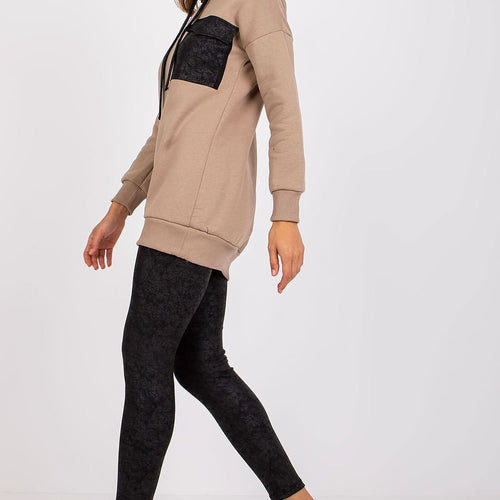A sweatshirt set consisting of a sweatshirt and leggings. Sweatshirt with long sleeves and hood, leggings with wide elastic waistband. Cotton 72 % Spandex 6 % Polyester 22 % Size Lenght Chest Waist S/M 77/93 cm 106 cm 68 cm