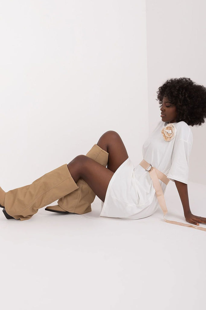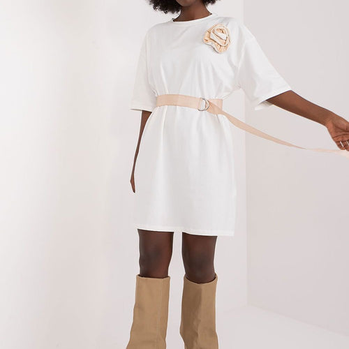 The straight-line everyday dress is the quintessence of comfort and chic, perfect for everyday situations where you want to feel comfortable while looking graceful. Its minimalist cut is enhanced by a subtle decorative flower placed on the front, which gives it a slightly romantic touch. Made mainly of lightweight cotton, the dress provides a feeling of pleasant softness on the...