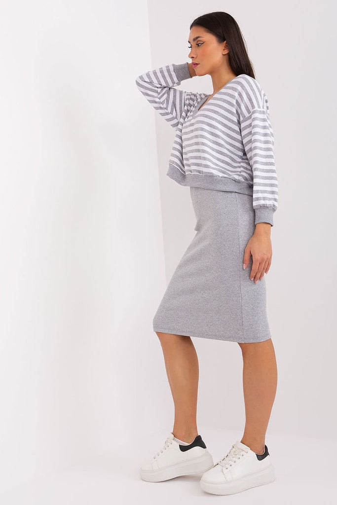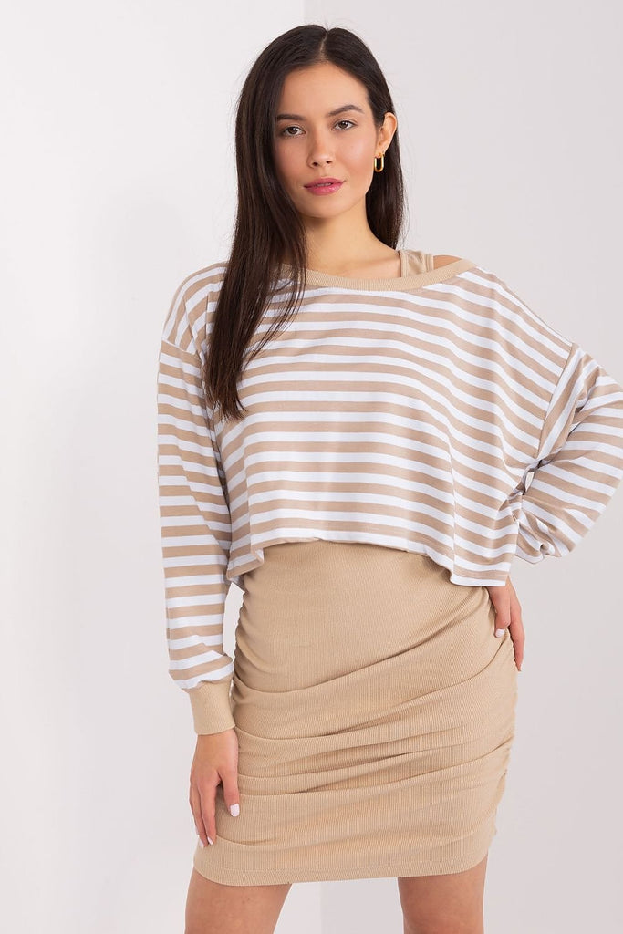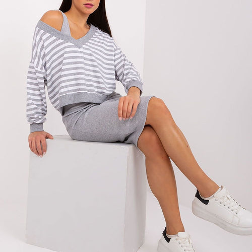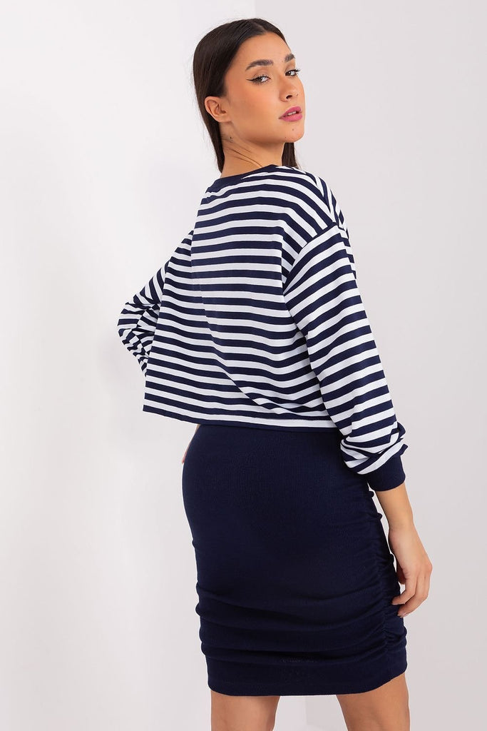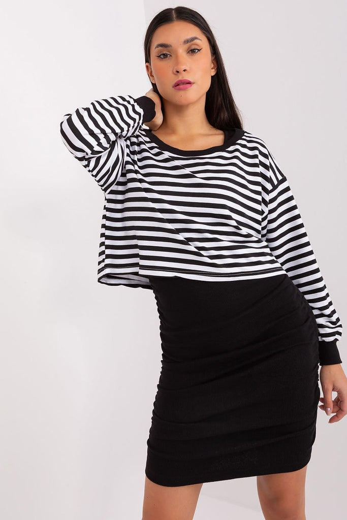 The blouse and dress set is a perfect combination of comfort and style, ideal for everyday situations where you want to stay casual and look fashionable at the same time. The dress made of ribbed material adds originality to the set, while the striped blouse gives it lightness and freshness. The dominant material in the set is comfortable and soft...