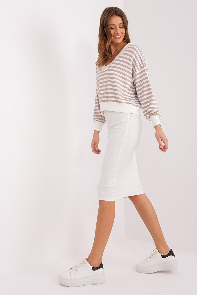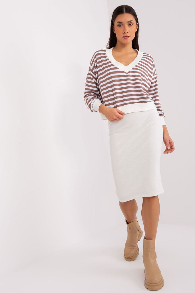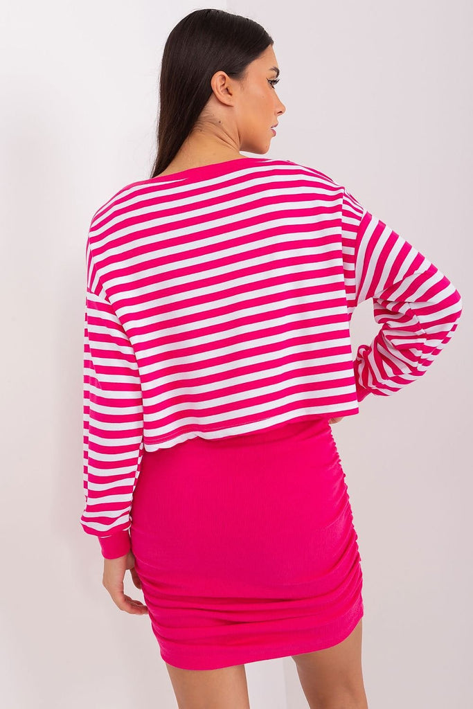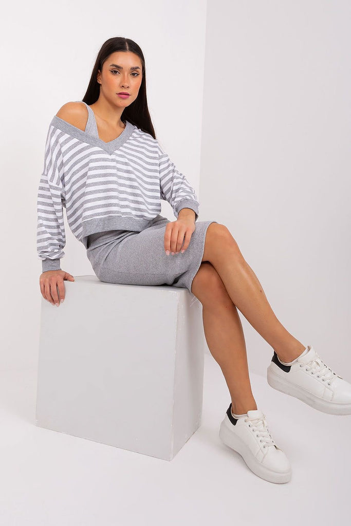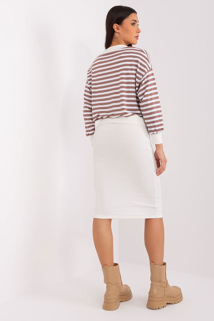 The blouse and dress set is a perfect combination of comfort and style, ideal for everyday situations where you want to stay casual and look fashionable at the same time. The dress made of ribbed material adds originality to the set, while the striped blouse gives it lightness and freshness. The dominant material in the set is comfortable and soft...
