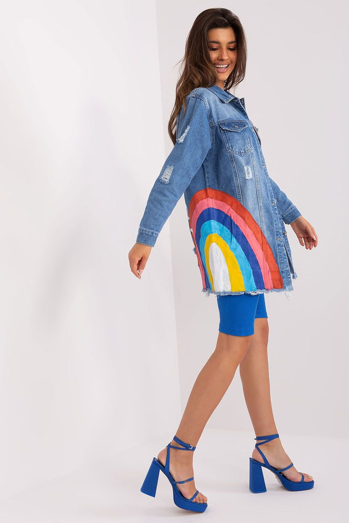 Women's denim jacket is an excellent choice for women who appreciate casual, everyday style. Its short length and button closure make it an ideal choice for warmer spring and summer days. Made mainly of high-quality cotton, it guarantees a comfortable and breathable fit, making it perfect as a lightweight garment on cooler evenings. The jacket has slip pockets on the...