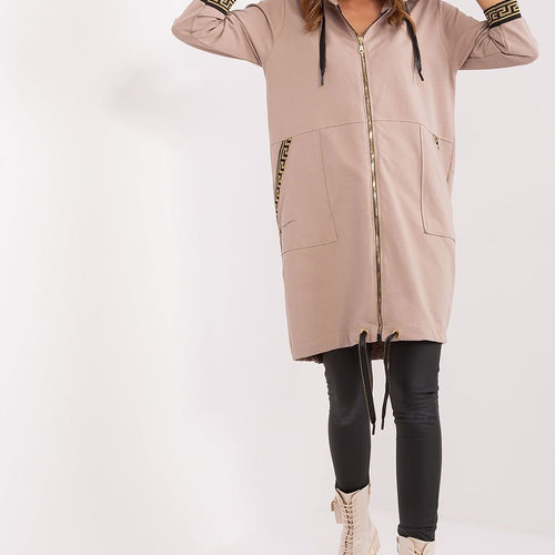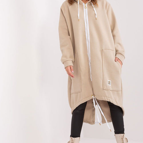 This women's sweatshirt is an expression of casual style with a touch of originality. The asymmetrical hem gives it a modern touch, while the smooth cotton fabric provides comfort. The long sleeve, hood and zipper with tie ties create a dynamic design. In addition, slip pockets make this sweatshirt not only look great, but also practical. Perfect for everyday wear...