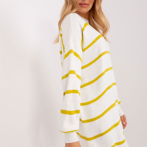 This long striped sweater is an excellent choice for various occasions, both everyday and for work. It is made of soft and warm material, which consists of 100% acrylic. The long sleeve and round neckline give it a casual style that goes with many different outfits. Stripes add a fashionable and varied pattern to the sweater. This is the perfect...
