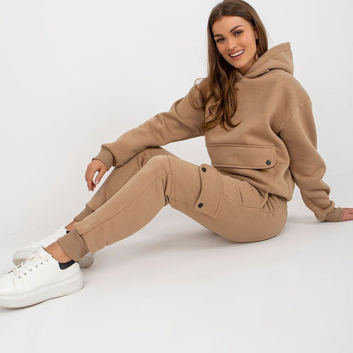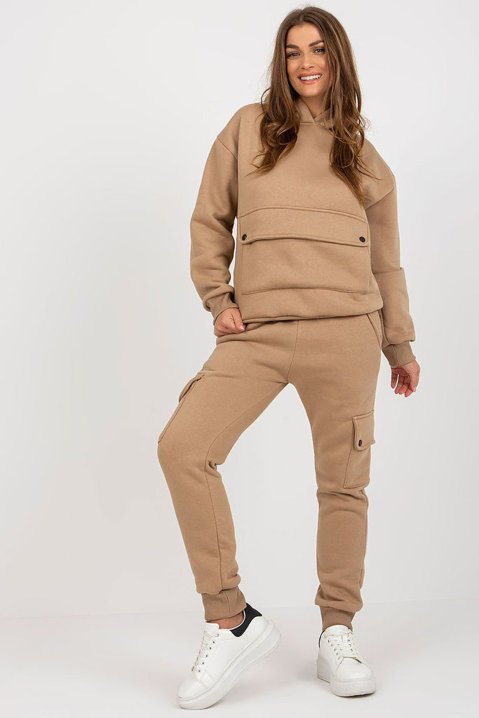 This set is an ideal choice for those who appreciate comfort and casual style. It consists of a sweatshirt and pants, creating a complete set for various occasions. Hooded sweatshirt with long sleeves is a great option for colder days. The hood adds a sporty touch, while the long sleeves provide warmth. On the front of the sweatshirt is a...