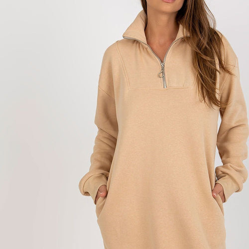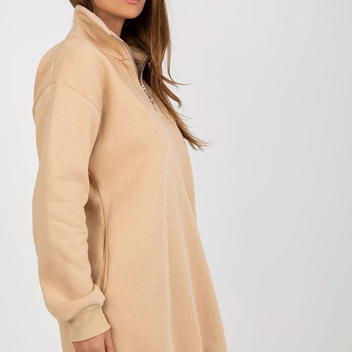 This sweat dress is a combination of comfort and style in one. Made of smooth cotton material, it is an ideal choice for everyday wear. The dress has long sleeves that will keep you warm on colder days. A stand-up collar with a zipper closure adds a modern touch. The slip pockets on the sides are a practical element that...