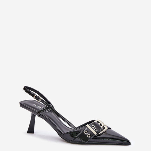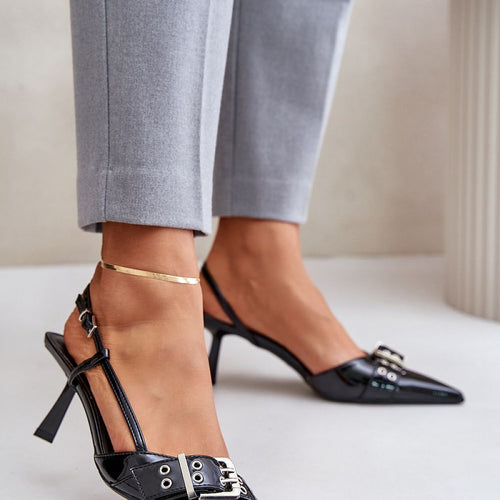 Lacquered women's stilettos made of eco leather are an elegant choice for special occasions. The model is characterized by pointed toes and an adjustable strap fastened with a buckle, which ensures a perfect fit. An additional decorative element is a stylish buckle at the front, which adds distinction. Ideal for elegant dresses and formal styling. fabric artificial leather Footbed artificial...