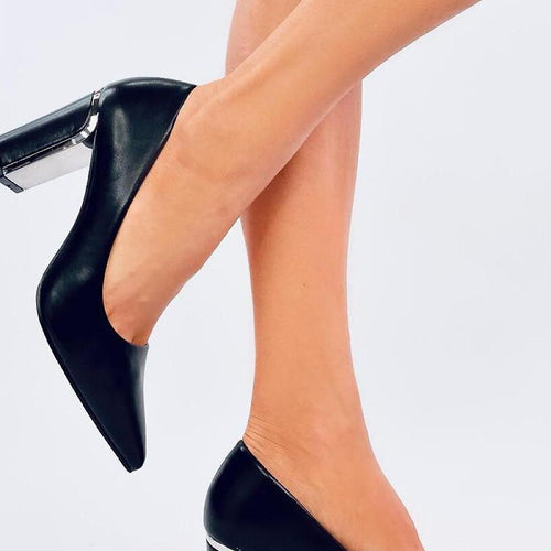 Faceted women's pumps on a post with a height of 8,5 cm. Their graceful cut combined with metallic inserts gives a unique effect.... They look beautifully on the leg! If you want to look unique and enjoy comfort then you must have them - they have an inner insole made of natural leather : ) Outer material - ecological leather....