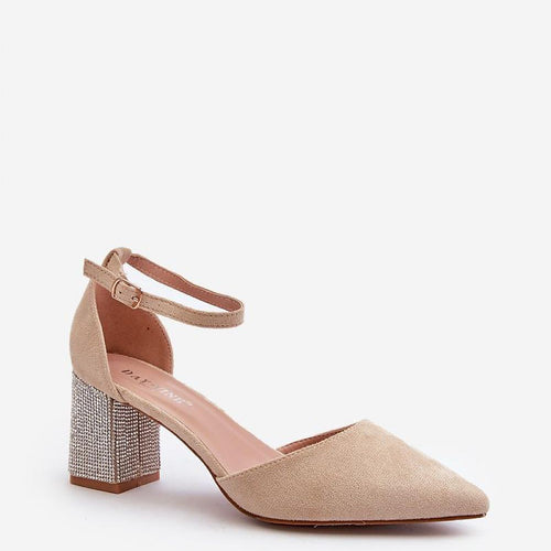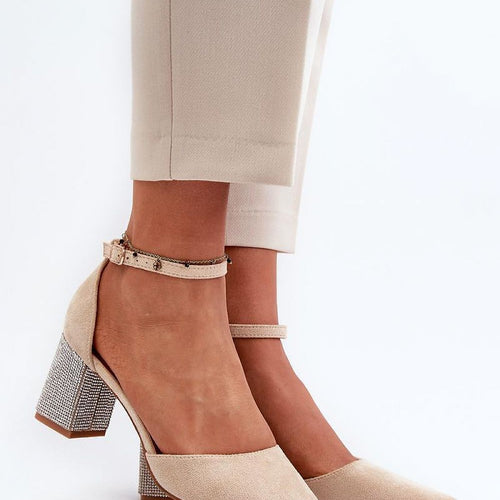 These pumps from the Jezzi brand. Set on a stable block heel, they ensure stability when walking. Fastened with an adjustable strap with a buckle, they guarantee a perfect fit to the foot. The almond-shaped toe adds a classic touch to the whole look. Leather, comfortable insole makes every step comfortable and pleasant. fabric imitation leather suede Footbed natural leather...