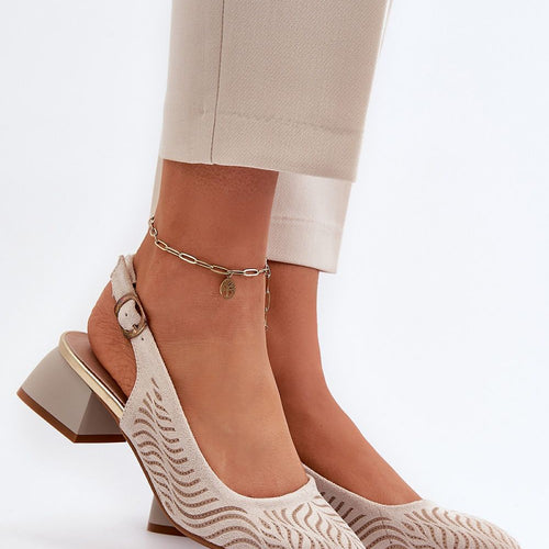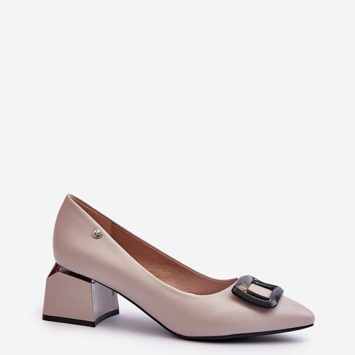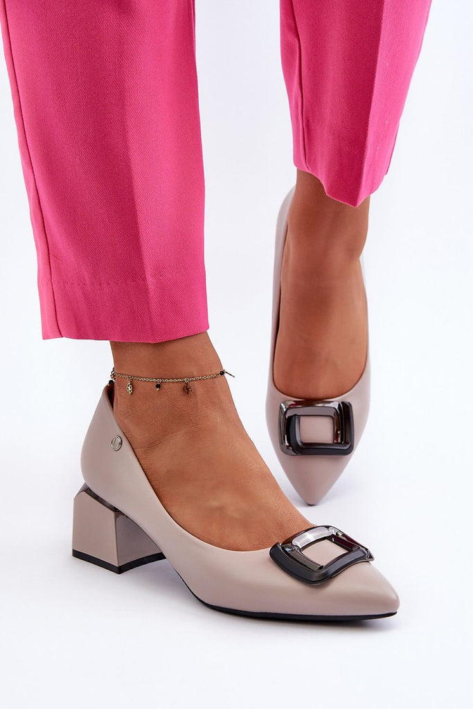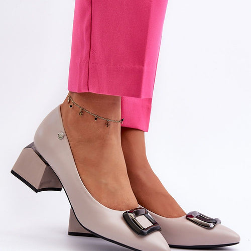 These pumps from the Jezzi brand. Set on a stable block heel, they ensure stability when walking. Fastened with an adjustable strap with a buckle, they guarantee a perfect fit to the foot. The almond-shaped toe adds a classic touch to the whole look. Leather, comfortable insole makes every step comfortable and pleasant. fabric imitation leather suede Footbed natural leather...