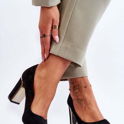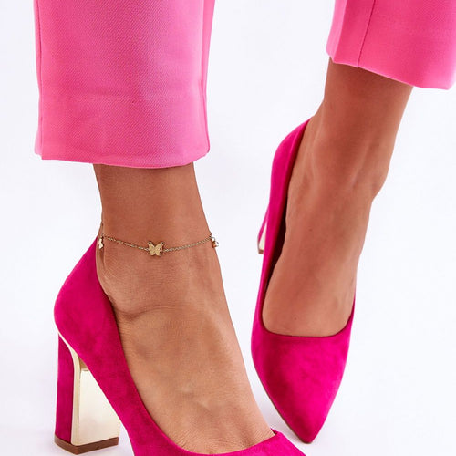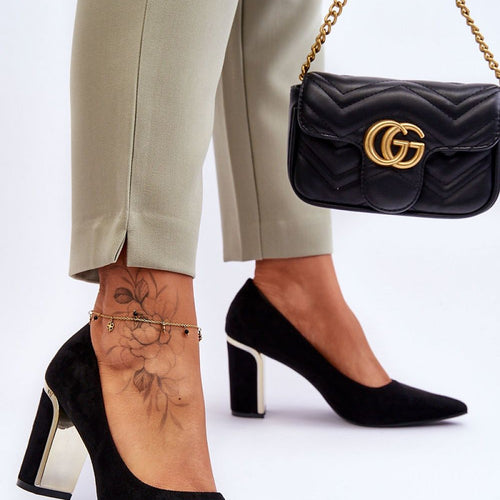 Women's pumps on a unique heel. The model has a shapely nose in a delicate spike - it looks beautiful on the leg.... Heel height of 10 cm guarantees comfort at every step - see for yourself : ) They are made of organic suede, which emphasizes their unique style. fabric ecological suede Heel height 10 cm Size Insole lenght...