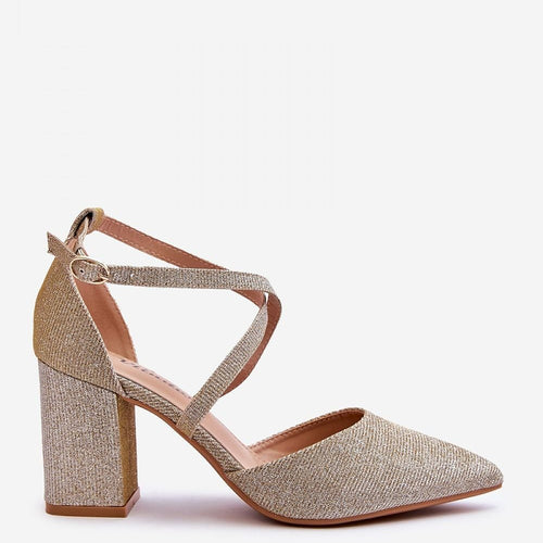 These lovely pumps are made from a plastic top with glitter. This model is set on a heel in the form of a stable post. A soft eco leather insole will ensure comfortable use. The shoes have a pointed toe and a stiffened heel counter. Ideal for a date or a party with friends. fabric ~tworzywo sztuczne Footbed artificial leather...