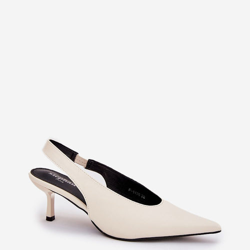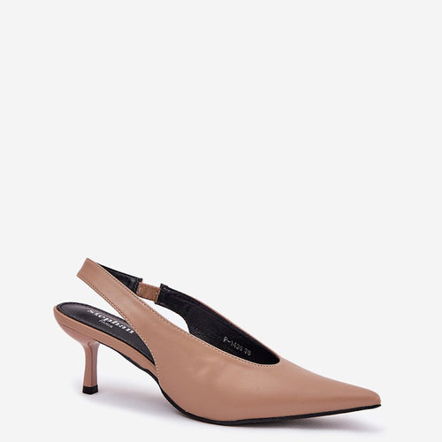 Heels made of eco leather are a perfect option for special events and evening meetings. Their classic, pointed toes add elegance and visually lengthen legs. The elastic strap placed at the back of the shoe ensures a better fit to the foot, which translates into comfort of use. These heels are an ideal addition to elegant dresses and trousers. fabric...