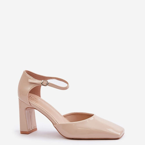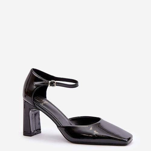 Elegant pumps made of lacquered eco leather, perfect for any occasion. Set on a stable post, they provide comfort and style all day long. The model is distinguished by a square toe, which gives them a modern character. Fastened with an adjustable strap with a buckle, so they fit the foot perfectly. They are a versatile choice that will perfectly...