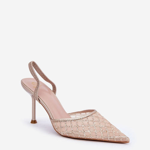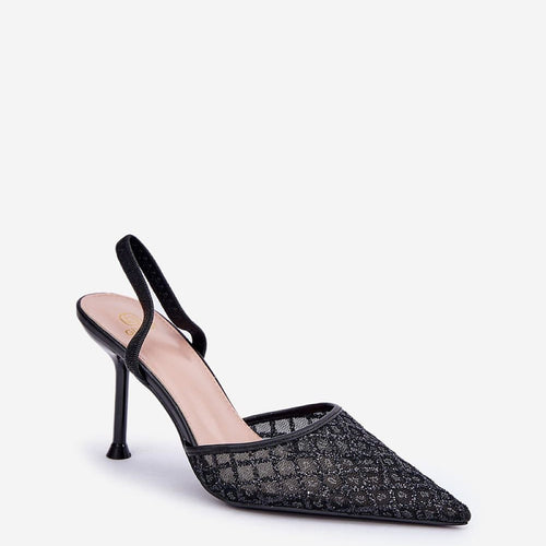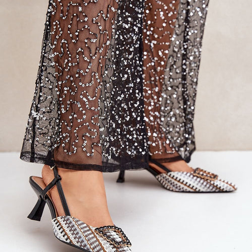 Women's high heels with an open heel, which enchant with their appearance. The model with pointed toes visually lengthens the legs, and the decoration at the front adds a unique charm to them. Fastened with an adjustable buckle strap, they provide comfort and perfect fit. An ideal choice for evening outings and special occasions. fabric artificial leather Footbed artificial leather...