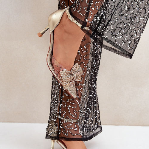 Stylish women's high heels decorated with glittering sequins that give them a unique shine. This model has pointed toes that visually slim the legs, and a soft insole made of eco-leather, providing comfort during wear. These elegant shoes are perfect for evening outings, ceremonies or New Year's Eve parties, adding unique charm and class to your styling. fabric fabric Footbed...