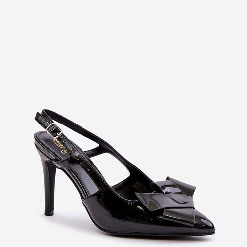 Elegant women's stilettos made of patent eco leather are a stylish choice for special occasions. The model is characterized by pointed toes, which optically slenderize the legs, and an adjustable strap with a buckle, ensuring a perfect fit. The front of the shoe is decorated with a striking ornament, adding a distinctive character to the whole. Perfect for elegant dresses...