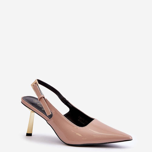 Elegant stilettos made of lacquered eco leather are an exceptional choice for lovers of stylish accents. Set on a decorative gold stiletto heel, the model adds a chic touch to any styling. Pointed noses emphasize the elegance of the shoes, and the adjustable strap with a buckle ensures a comfortable and secure fit. Ideal for special occasions, they will perfectly...