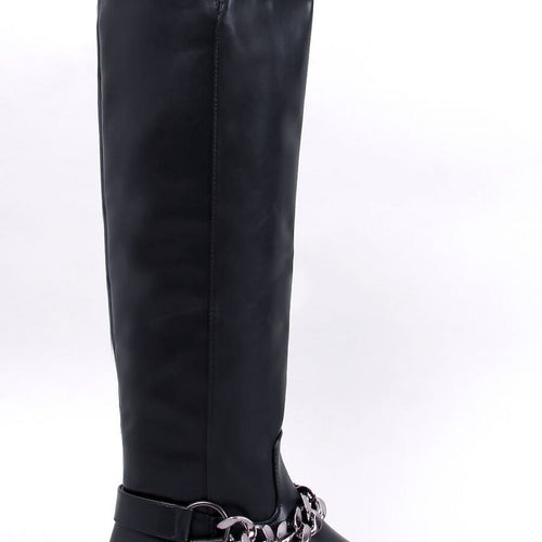 Women's veneer boots ? jackboots on a flat sole. Simple design with fashionable chain (can be easily removed) is a fashion hit! The practical zipper closure ensures quick and effortless putting on. They are made of organic leather, on a foam lining. fabric artificial leather warmers foam padding Heel height 2,5 cm Size Insole lenght 36 23 cm 37 23,5...