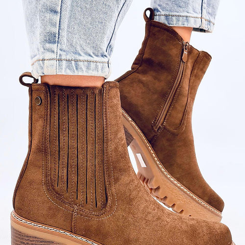 Women's suede boots - baggers on a protector. The most fashionable cut on a thick sole and with thick laces will attract all eyes! This is a must-have item this season : ) Practical zipper closure will make it easy to put on every day. They are made of eco-suede, and the interior is lined with soft fur. fabric ecological...