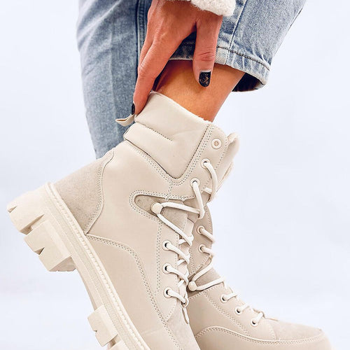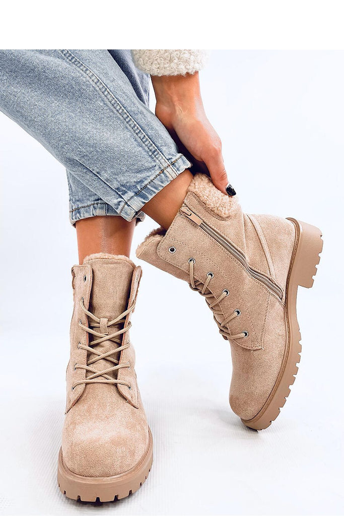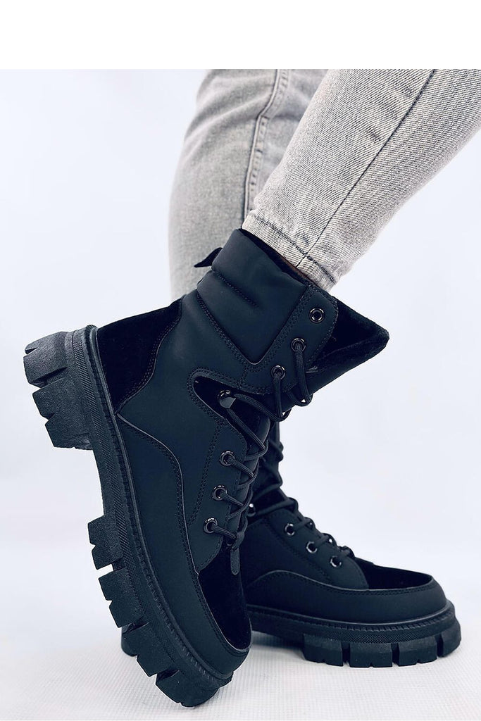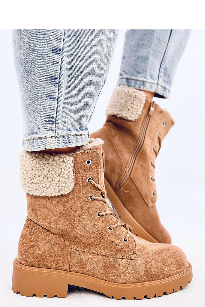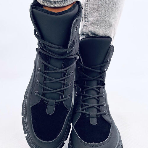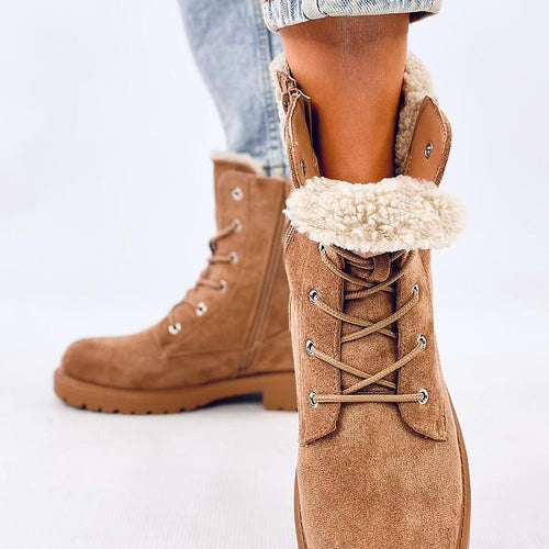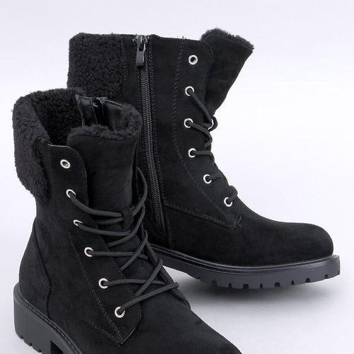 Women's lace-up boots on a thick sole. They have a timeless cut that is always on trend! Thanks to the traditional lacing, they fit perfectly to each foot's stance, and also have a practical zipper closure. The interior is lined with warm and cuddly fur. Outer material - ecological leather + ecological suede. fabric ~skóra ekologiczna + zamsz ekologiczny warmers...
