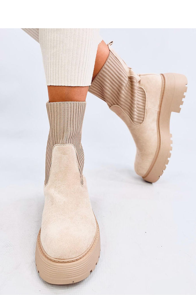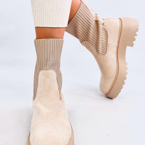 Women's suede boots with elastic welt. Their unique character is highlighted by the original sock upper and a massive platform. They are one of a kind! We guarantee that you will not want to take them off your feet : ) The interior of the shoes is lined with soft fur. Outer material ? ecological suede + fabric. fabric suede...