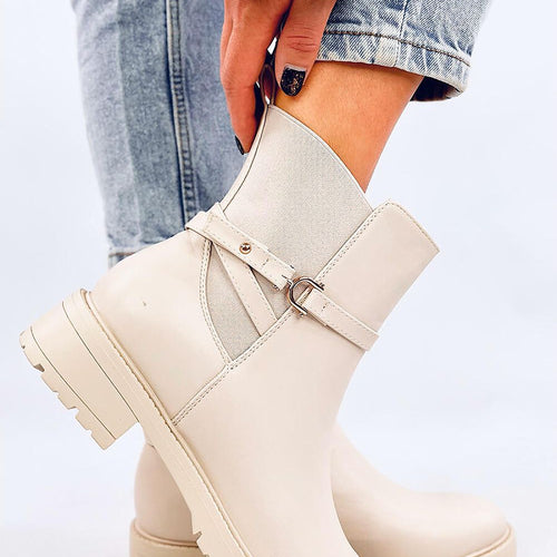 Women's military lace-up boots. This timeless cut with stylish embellishments in gold finish will surely catch your eye : ) A practical zipper on the side of the upper is a guarantee of comfort. They are made of organic leather, and the interior is lined with soft fur. fabric artificial leather warmers soft fur Heel height 4 cm Platform height...