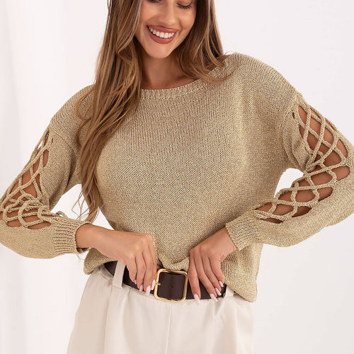 An elegant women's sweater of standard length, made of high-quality viscose with the addition of metallic yarn, which subtly shines and adds a unique character to the whole. The model stands out with trendy cut-outs on the sleeves, giving the classic form a modern accent. The smooth pattern makes the sweater versatile and easy to combine with other wardrobe items....