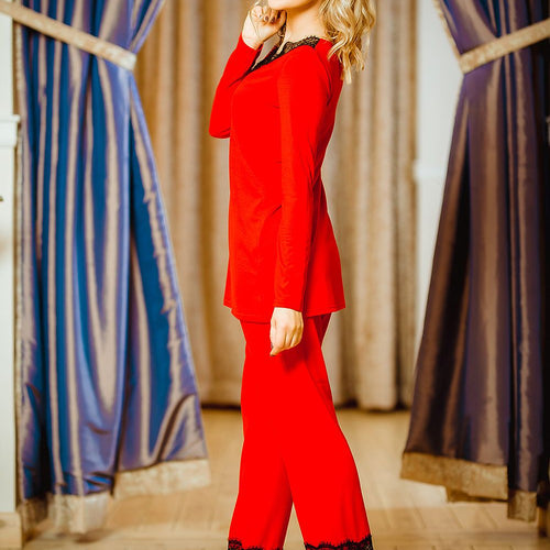 Made of viscose, Kapas set will steal hearts of all ladies who like elegance and universal solutions at the same time. Longer blouse, which resembles a tunic. Add to it long trousers, decorated with the same lace as the neckline of the shirt. If you are cold you may put on the whole set and after slipping into bed you...