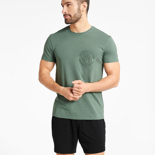 The two-piece men's FIELD pajamas are made of pleasant to the touch, 100% cotton. The set consists of a T-shirt in a shade of extinguished green and black, straight cut short shorts. The uniformly colored bottom of the set creates an interesting combination with the upper part decorated with an embossed Henderson logo. The two-piece men's FIELD pajamas is an...