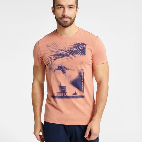 Fashionable two-piece men's pajamas FEARLESS is a unique proposition for men who like original patterns and silhouette-enhancing cuts. The set attracts attention with a shirt in the shade of peach, which is decorated with a large navy blue print, referring to surfing in exotic corners of the world. The color of the graphic harmonizes with the lower part of the...