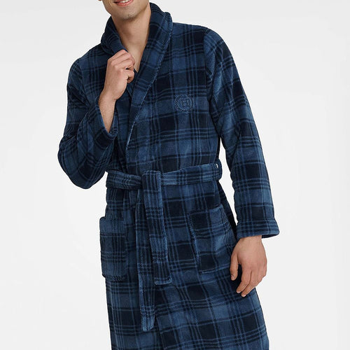 Classic checkered men's bathrobe, Hoodless bathrobe with shawl collar decorated with elegant, subtle embroidery on the chest. Warm, lightweight, comfortable soft knit bathrobe. Dimensions: Size M: Chest 94-98 cm, hips 98-102 cm. Size L: Chest 98-102 cm, hips 102-106 cm. Size XL: Chest 102-106 cm, hips 106-110 cm Size XXL: Chest 106-110 cm, hips 110-114 cm Polyester 100 %