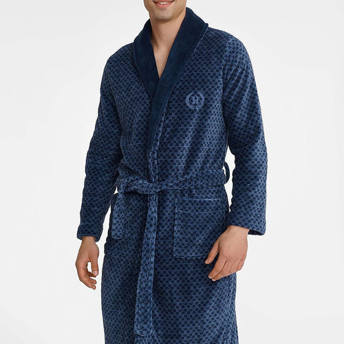Men's bathrobe classic in cut but with an original decorative motif. Comfortable, warm, lightweight Henderson Unix bathrobe recommended. Dimensions: Size M: Chest 94-98 cm, hips 98-102 cm. Size L: Chest 98-102 cm, hips 102-106 cm. Size XL: Chest 102-106 cm, hips 106-110 cm Size XXL: Chest 106-110 cm, hips 110-114 cm Polyester 100 %
