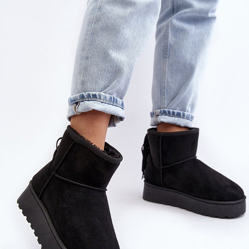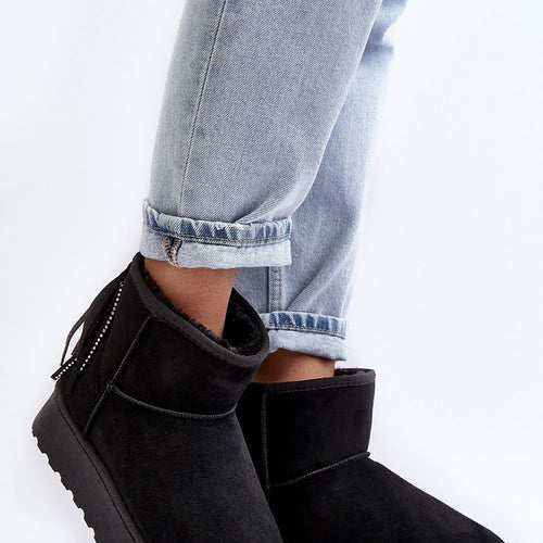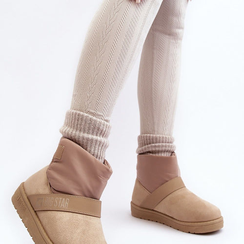 Warm and fashionable snow boots from Big Star brand are made of eco-suede. The interior is insulated with thick fur. Set on a platform made of rubber material. Classic cut, which fits many styles. On the back there is a logo of the brand. In addition, the heel counter is stiffened. This comfortable and warm model should be yours! fabric...