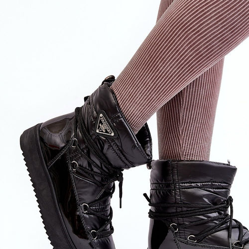 Women's snow boots with ankle-length upper. Made from a combination of textile material and eco leather. Set on a thick platform, which will perfectly insulate from the cold ground. Slip-on model with shiny laces. The inside is insulated with fur. Perfect for cold days! You should definitely have them! fabric artificial leather warmers fur Footbed fur Upper height 15 cm...