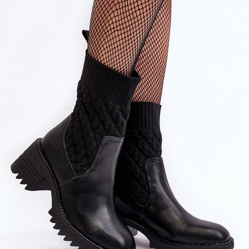 Women's boots made of a combination of eco leather and fabric. Low, solid heel and platform will ensure stability on every step. Square toe noses. Stiffened heel counter. Middle insulated with shoe blanket only at the height of the foot. fabric natural leather warmers shoe cover Footbed ~filcowa Upper height 11 cm Heel height 6 cm Size Insole lenght 36...